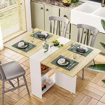Tiptiper Folding Dining Table, Versatile Dinner Table with 6 Wheels and 2 Storage Racks, Space Saving Dining Room Table, Folding Kitchen Table, Pear Wood Color and White