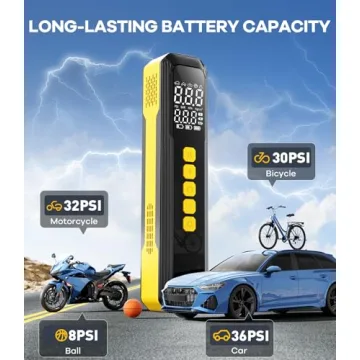 Engineered for longevity, this air pump is equipped with a **long-lasting battery** that provides peace of mind while traveling. You can rely on it during roadside emergencies, making it a must-have for your vehicle. With **5 smart modes** including preset options for bicycles, motorcycles, cars, and balls, this tire inflator takes the complexity out of inflating your tires. Plus, its **auto shut-off** feature ensures safety as it stops once the desired pressure is reached, accompanied by an accurate gauge for close monitoring.