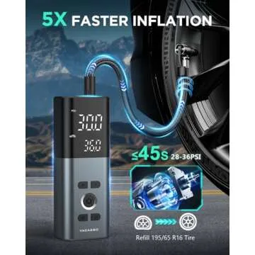 Show moreIntroducing the Tire Inflator Portable Air Compressor from VACASSO, the ultimate solution for all your inflation needs! This powerful machine combines cutting-edge technology with user-friendly features, designed for car enthusiasts and everyday drivers alike. With a remarkable 20,000mAh rechargeable battery, this air compressor offers an astonishing inflation speed of 5X faster than traditional models, inflating a standard 195/65R15 tire in just 45 seconds. Whether you're at home, on the road, or exploring the great outdoors, this compact device ensures you'll never find yourself stranded with low tire pressure again.