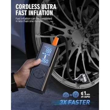 Show moreIntroducing the **Tire Inflator Portable Air Compressor**, your ultimate solution for fast and efficient tire inflation. With a robust capacity of **180PSI** and a powerful **25000mAh battery**, this portable air pump not only inflates tires quickly – up to **3X faster** than leading competitors – but also ensures you have the peace of mind that comes with reliable performance. Its intelligent sensing system automatically halts inflation once the desired pressure is reached, preventing the risk of over-inflation, making it an essential tool for any roadside assistance needs.