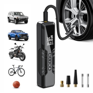 This versatile inflator comes equipped with four types of air nozzles and a nylon air hose, making it suitable for various applications, from cars and motorcycles to inflating sports equipment like basketballs. Due to its design, it is not intended for high-volume items like air mattresses, but it excels for all common tasks you'll encounter. This all-purpose functionality means it is an indispensable tool for those who value convenience and versatility.