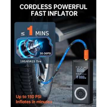 - Quick Inflation: Inflates tires in minutes thanks to 150 PSI capacity.