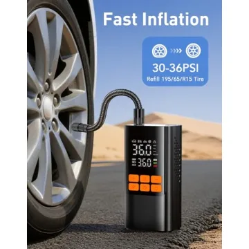 Designed with user-friendliness in mind, the precision digital gauge lets you set your desired pressure, and the auto-cutoff feature ensures safety by halting inflation as soon as your target PSI is reached. Thanks to its high-performance cylinders, you can inflate a standard car tire in a flash, achieving a maximum pressure of 150 PSI and an impressive airflow of 36L/min. Its built-in LED and SOS lights further enhance usability during dark conditions, making it an essential tool for any driver.