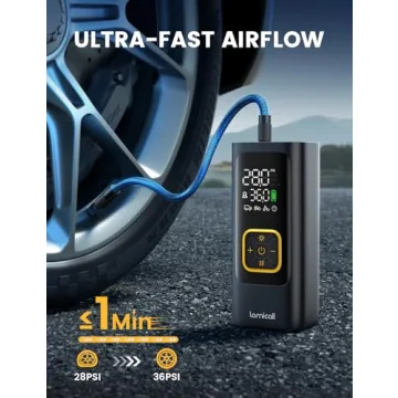 Introducing the **Lamicall Tire Inflator Portable Air Compressor**, the ultimate solution for all your inflation needs! This remarkable device is not only ultra-compact, easily fitting into your car's glove box or motorcycle tailbox, but it also boasts a powerful performance that stands out in the market. With a maximum pressure of **150 PSI** and an airflow rate of **35L/Min (1.25 CFM)**, this air pump can inflate your tires in a fraction of the time compared to traditional compressors. Set your desired...