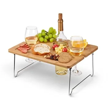 Tirrinia Portable Wine Picnic Table, Ideal Wine Gift for Women Men, Small Folding Outdoor Picnic & Cheese Tray with 2 Wine Glasses Holder for Camping, Park, Beach, Garden, Concerts