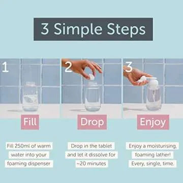 Show more Introducing the Tirtyl Skipper Foaming Hand Soap Tablet Refills, a groundbreaking solution for a cleaner home and a cleaner planet. This innovative product allows you to create luxurious foaming hand soap effortlessly with just the addition of water and a tablet. With each tablet producing 8 to 10 fl oz of rich foam, you'll be amazed at how simple it is to maintain cleanliness without the guilt of single-use plastic. Say goodbye to bulky soap bottles and hello to a sustainable handwashing revolution!
