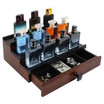 Show moreDiscover the ultimate in elegance and functionality with the Premium Cologne Organizer for Men by TIRYIUOU. Crafted from fine black walnut, this wooden perfume organizer is not only a stunning addition to any dressing table but also provides a practical solution for cologne storage. Its refined design seamlessly blends sophistication with utility, making it a perfect fit for both the modern man or woman. The structure boasts three distinct layers: the first features a convenient drawer with a handle for easy access, while the third layer includes a lid that opens to reveal hidden storage for private items. This thoughtful organization showcases your favorite scents and keeps them easily accessible, ensuring you always look and smell your best.