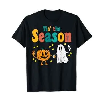 Show moreEmbrace the spirit of Halloween with our delightful Tis The Season Pumpkin Ghost Retro Groovy Vintage Halloween T-Shirt. This charming tee captures the whimsical essence of the season with its unique pumpkin ghost design, making it the perfect attire for trick-or-treating, Halloween parties, or cozy festivities at home. Made from soft, high-quality materials, it ensures comfort for everyone—men, women, boys, girls, and kids alike! Each shirt features a classic fit and is designed for easy wear, giving you a stylish yet laid-back option for your Halloween celebrations.