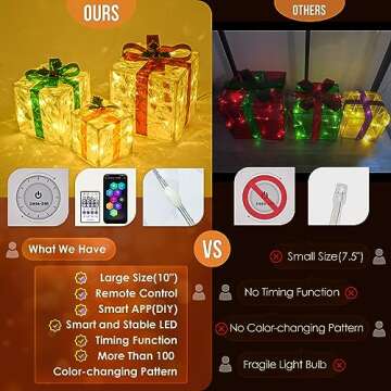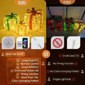 Imagine the delight on your family’s faces as they gather around these enchanting lighted gift boxes, casting colorful reflections across the room. With the ability to mix and match lighting styles and timings, each user can craft a unique experience each time you celebrate. This product doesn’t merely serve as decoration but transforms your environment, creating memorable moments filled with warmth and delight during the holiday season and beyond.
