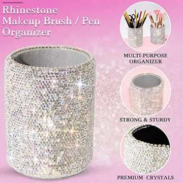 TISHAA Bling Cup Holder Organizer – Pen Pencil Office Desk Table Decorative Supplies Rhinestone Crystal Glitter Home Bedroom Vanity Makeup Brush Storage Tumbler Bins Container Accessories