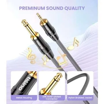 tisino 1/4 Mono to 1/8 Stereo Cable, 3.5mm TRS Stereo to 1/4 inch TS Mono Interconnect Cable (Mono to Stereo Adapter) - 3 feet