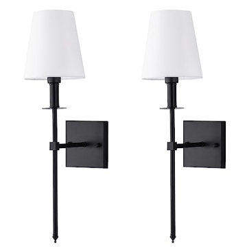 Show moreIntroducing the exquisite TISLYCO Wall Sconce Set of 2, a perfect marriage of modern elegance and vintage charm designed to transform your living spaces. With a stunning matte black finish and delicate flared white fabric shades, these sconces will not only illuminate your interiors but also serve as a sophisticated design statement. Standing at 22.3 inches tall and 5.9 inches wide, they are the perfect size for various spaces, from halls to bedrooms, ensuring a chic aesthetic with a touch of warmth.
