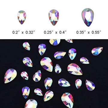 Tisslan 100pcs Crystal AB Foiled Pear Shape Flatback Rhinestone 3 Sizes Mix Nail Art Stones Decorations Jewels for DIY Supplies