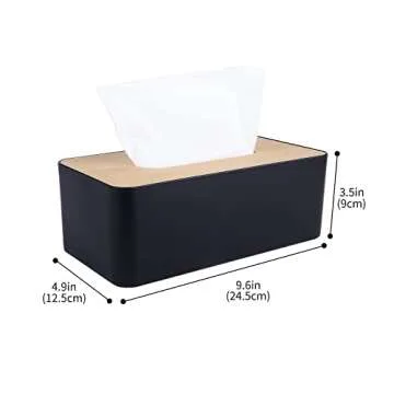 Tissue Box Cover,Tissue Holders,Tissue Box Holder for Bathrooms,Bamboo Cover Plate,Home and Office,9.7 * 5 * 3.6in (Black)