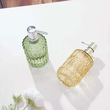 TISUZXCV Diamond Design 12 Oz Green Glass Soap Dispenser,Refillable Lotion Soap Dispenser for Bathroom, Kitchen, Hand Soap, Dish Soap,Shampoo, Ideal for Bathroom Countertop. (Clear Gold)