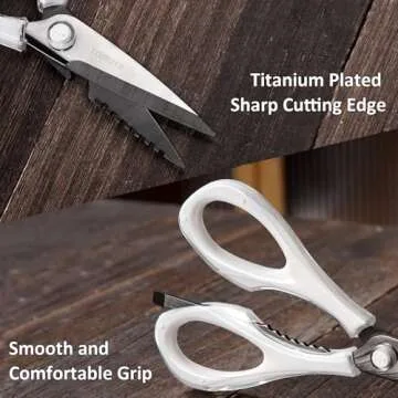 One standout feature that sets these scissors apart is their multifunctionality. With an integrated can/bottle opener, nut cracker, and meat tenderizer, you'll find everything you need at your fingertips. The attractive design, coupled with soft, comfort-grip handles, enhances usability, providing a non-slip grip that keeps your hands safe and secure during the busiest kitchen tasks. Say goodbye to the fear of cutting accidents or the discomfort of wielding inferior tools!