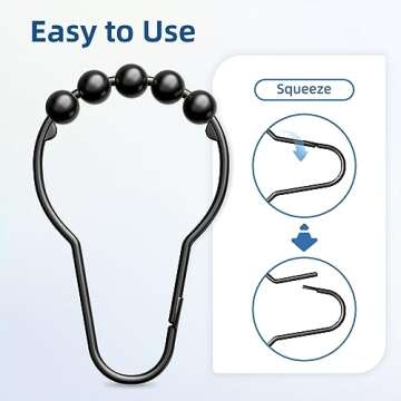 Titanker Shower Curtain Rings Hooks, Rust-Resistant Metal Shower Curtain Hooks for Bathroom Shower Rods Shower Hooks Shower Rings for Curtain - Set of 12, Matte Black