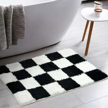 Show more Introducing the Tititex Luxury Black White Checkered Grid Bathroom Rug, where classic elegance meets exceptional comfort. This stylish bath rug, measuring 16"x24", boasts a chic checkered design that not only enhances your bathroom aesthetics but also provides a safe and comfortable experience. Made from premium fluffy plush microfibers, it is ultra absorbent to handle those post-shower splashes, ensuring your floors remain dry. The soft surface of this rug offers a soothing sensation for your feet, making it perfect for that much-deserved relaxation after a long day.