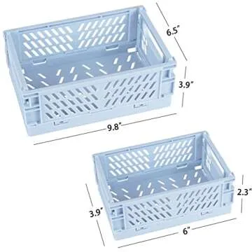 Show more Introducing the Tixill 2-Pack Mini Foldable Plastic Baskets—the perfect solution for all your organizing and storage needs! Designed with versatility in mind, these compact crates offer a blend of functionality and style, making them essential accessories for any modern home. Each basket measures 5.9 x 3.8 x 2.2 inches, providing ample space for storing cosmetics, snacks, stationery, toiletries, and more without taking up too much room on your countertop.