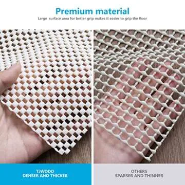 Show moreDiscover the ultimate solution for your area rugs with the TJWODO Non Slip Area Rug Pads. Designed specifically to enhance your home environment, these extra-thick mats measure a generous 2' x 4' and are expertly crafted to keep your rugs perfectly in place on hardwood floors. Whether you’re aiming to reduce noise in high-traffic areas or simply want to prevent your rugs from slipping during your daily routine, these rug pads deliver superior functionality. Made from eco-friendly materials, they not only provide a resilient foundation to extend the life of your rugs but also ensure a safe living space for you and your loved ones.