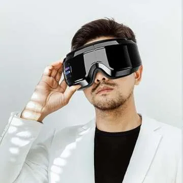 TLINNA Eye Massager with Airbag Kneading,Constant Temperature Hot Compress, Multi-Frequency Vibration and Bluetooth Music (Black, Large)
