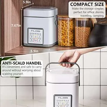 TLOG Mini Rice Cooker 2.5 Cups Uncooked, Healthy Ceramic Coating Portable Cooker, 1.2L Travel Small for 1-3 People, Personal maker, Food Steamer, 12 Hours delay timer, Multi-cooker Grains, Oats