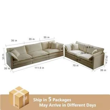 Tmsan 2 Piece Living Room Furniture Set, Chenille Deep Seat Loveseat and Sofa Set, Modern Luxury Sectional Cloud Couches for Apartment Office