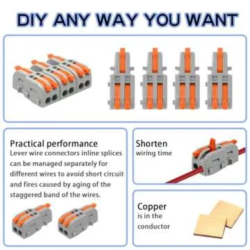 Show moreWelcome to a new era of wiring simplicity with the Tmyjfjingxi 20PCS Mini Electrical Wire Connectors. Crafted with precision and designed for efficiency, these lever wire connectors are your ideal partner in tackling all kinds of wiring projects. Made from durable nylon and enhanced by flame-retardant insulation, they ensure that your electrical connections are not just reliable but also safe. The guide strip, made from electrolytic copper with tin plating, delivers exceptional corrosion resistance, elevating the lifespan of your connections. Whether you're working on home appliances, power supplies, or motors, our connectors guarantee a dependable and secure bond.