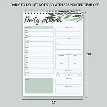 To Do List Notepad - Undated Daily Planner Pad with Hourly Schedule, 52 Tear Off Spiral checklist notepad with Hourly Schedule Goals Meal Plan Water Intake Exercise
