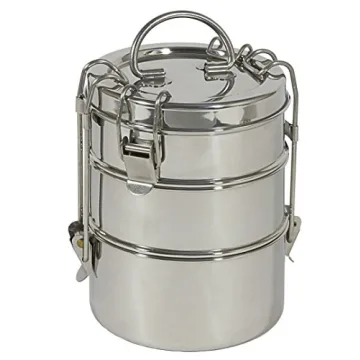 The top tin is liquid-tight, making it suitable for carrying soups or watery foods.