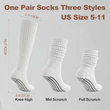TOAMOUR Pilates Socks with Grips for Women, 3 Pairs Long Scrunch Non Slip Yoga Barre Hospital Slouch Socks