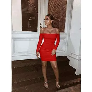 Show moreIntroducing the TOB Women’s Sexy Off Shoulder Backless Lace Up Club Bodycon Mini Dress in a stunning red hue that's designed to make an unforgettable statement. Tailored to fit and flatter, this dress is a perfect blend of elegance and allure, perfect for parties, night outs, or clubbing. The off-shoulder design showcases your shoulders and collarbone, while the backless feature adds a touch of daring charm. Crafted from a soft and stretchy fabric, this bodycon dress offers a comfortable yet form-fitting silhouette that enhances your natural curves.