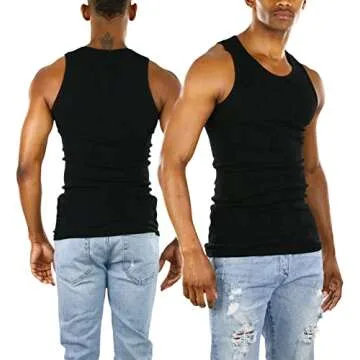 Show moreIntroducing the ToBeInStyle Men's Single A-Shirt Tank Top Undershirt in Black, a must-have addition to your wardrobe. Crafted with comfort and versatility in mind, this sleeveless tank is designed to become your go-to choice for a multitude of occasions. Whether you're hitting the gym, embarking on outdoor adventures, or simply lounging at home, this tank top offers the ultimate combination of style and functionality. The classic slim cut flatters every body type, while the breathable fabric keeps you feeling cool and comfortable regardless of the activity. Choose from a selection of packs or singles to build the perfect collection of colors that match your unique style. Experience the difference of high-quality craftsmanship with reinforced stitching around the arm openings for added durability, and wide armholes that provide necessary comfort and unrestricted movement.