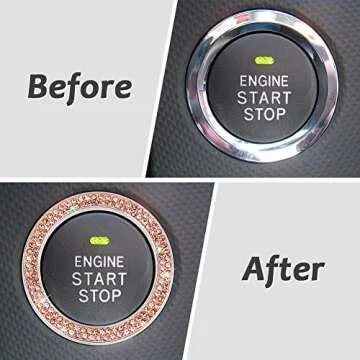 ToBeQueen Push Start Button Bling Ring Emblem Sticker,2Pcs Car Bling Decor Girly Car Accessories Interior Ring Car Decorations for Women,Champagne