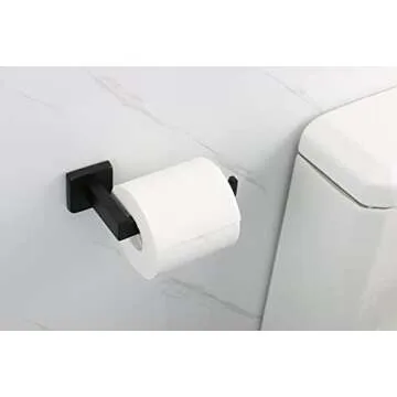 TocTen Toilet Paper Holder-Bathroom Tissue Holder Fit Big Roll Paper, Made of Thicken SUS 304 Stainless Steel, Square Paper Roll Holder Wall Mount Suitable for Bathroom, Kitchen, Office (Black, 6.5)