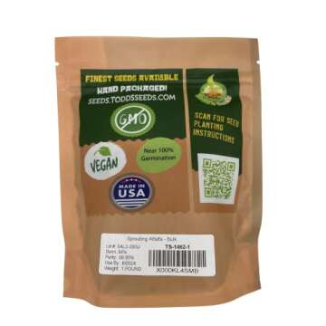 When comparing Todd’s Seeds Alfalfa Sprouting Seeds to other brands, the meticulous hand-packaging and lab testing processes stand out significantly. Many competitors may offer alfalfa seeds, but only Todd's provides the assurance of maximum germination rates alongside thorough testing for pathogens. Coupled with their commitment to freshness and quality, Todd’s seeds demonstrate exceptional performance in both flavor and health benefits compared to others in the market.