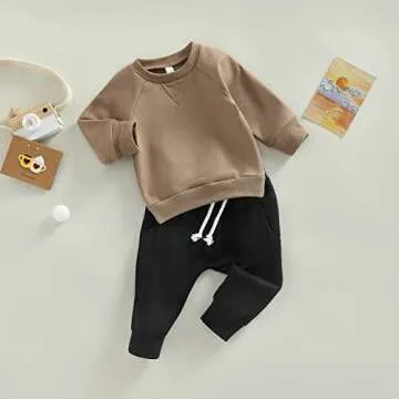 Toddler Baby Boy Clothes Solid Color Long Sleeve Crewneck Sweatshirt Top Casual Pants Set 2Pcs Fall Winter Outfits (A- Coffee & Black, 2-3 Years)
