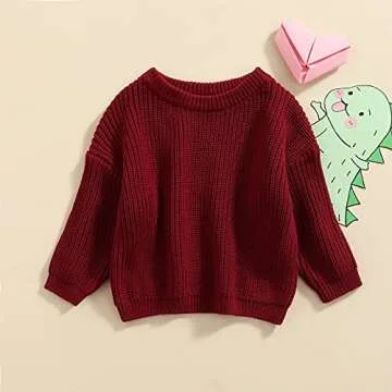 Toddler Baby Boy Girl Fall Winter Knit Sweater Long Sleeve Solid Color Pullover Top Warm Sweatsuit
