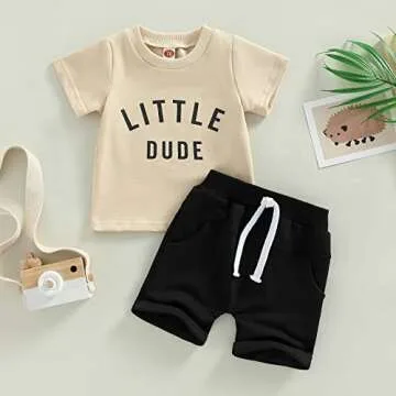 Toddler Baby Boy Summer Outfit Short Sleeve T Shirt Top Casual Shorts Set Infant Newborn Clothes 6 12 18 24 Month 2T (Little Dude Apricot, 12-18 Months)