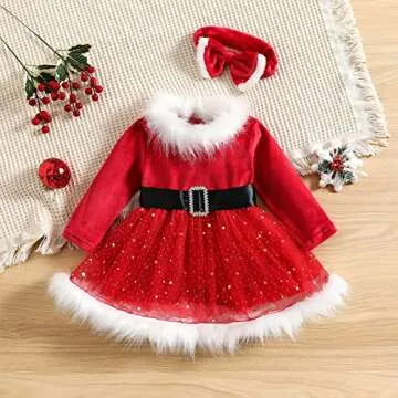 Toddler Baby Girl Christmas Dress Santa Claus Dress Princess Dress Cute Christmas Outfit (18-24 Months, Red Long Sleeve)