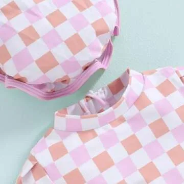 Toddler Baby Girl One Piece Swimsuit Long Sleeve Checkerboard Print Rash Guard Swimwear Summer Bathing Suit Purple 12-18 Months