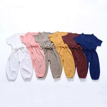 Toddler Baby Girl Summer Fall Basic Plain Short Sleeve Cotton Linen Drawstring Romper Jumpsuit (Mustard Yellow, 2-3T)