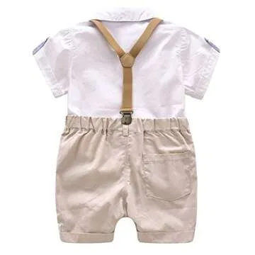 Toddler Boys 2 Piece Gentleman Outfit, Bowtie+ Polo Shirt+ Bid Shorts Overalls Set