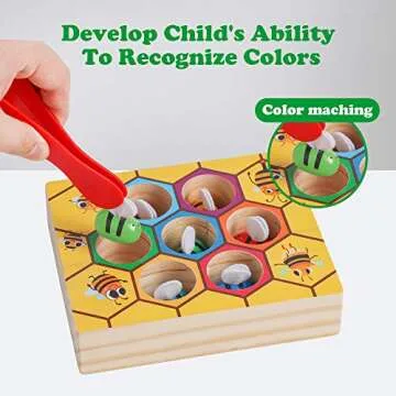 This educational toy is more than just a game; it’s an essential tool for improving hand-eye coordination and fine motor proficiency. The bees are perfectly sized for little hands to grasp, making them ideal for practicing gripping and enhancing those important visual recognition abilities. The challenge of using tweezers to return the bees to their home hive is not only engaging but also stimulates sensory exploration and cognitive development.