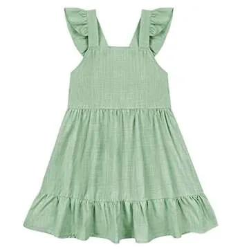 Toddler Girls Cotton Linen Smocking Dress Solid Ruffle Halter Sleeveless Dresses for Spring Summer (Green, 3-4T)