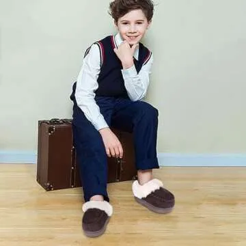 Toddler Kids House Shoes Slippers with Memory Foam Fuzzy and Warm Cozy Comfort Fleece Clog Slip On Sole Protection for Boys Girls Indoor Outdoor U422BBLFX217.SY-Brown-24.5