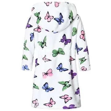 Toddler Little Big Girls Kids Soft Fleece Plush Flannel Cute Butterfly Pattern Hoodie Bathrobes Robe, Cream, US 2T, CN 100