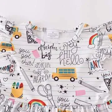 Toddler Little Girls Back to School Dresses -Apple, Pencils, Notebooks, Bookworm, School Bus,Glue,Tellurion,Blackboard Rainbow Dresses (3/4T, Back to School E)
