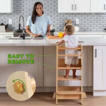 Toddler Standing Tower - Adjustable Height Toddler Kitchen Stool Helper - Ideal Kids Kitchen Step Stool for Learning New Skills - 2024 Design with Safety Feet - Varnished
