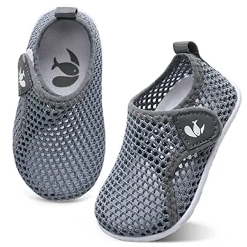 Toddler Water Shoes Toddler Swim Shoes Quick Dry Slip On Sneakers for Beach Pool Mesh Grey 12-18 Months Infant